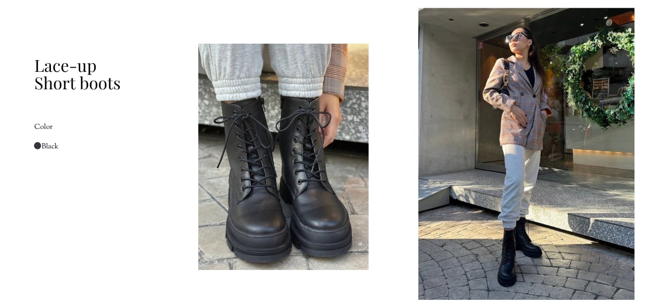 【サンプルセール】異素材コンビレースアップショートブーツ