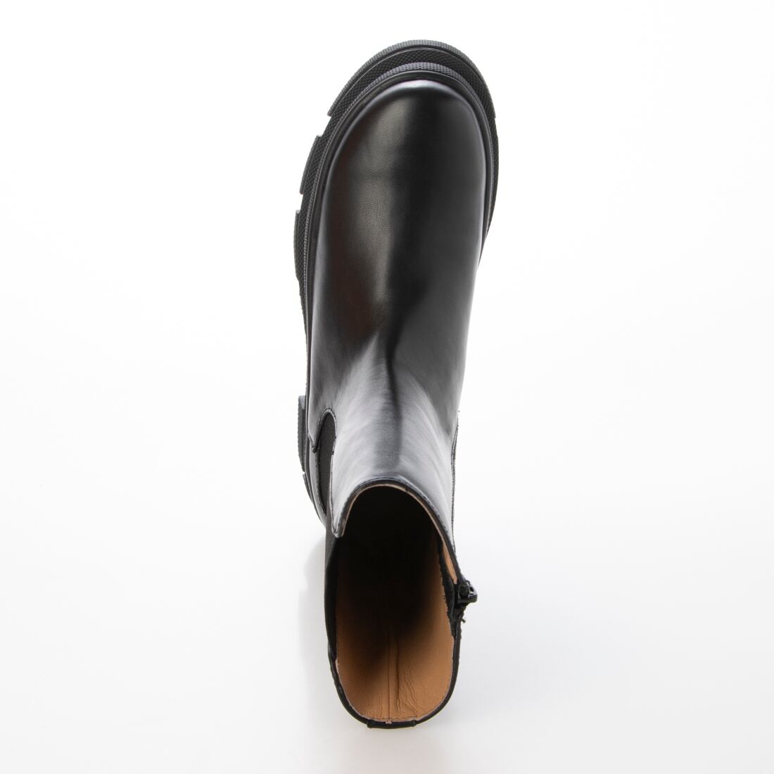 【本革】ボリュームソールサイドゴアショートブーツ。 サイドゴアと内側ファスナーの組み合わせで、 長めの筒丈でも簡単に着脱可能です。 ボリュームソールのデザインで脚長効果も◎